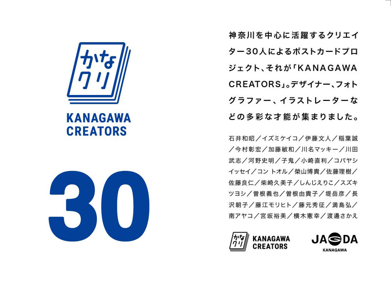 JAGDA神奈川の会員を中心とした神奈川のクリエイター30名のポストカードを販売します。