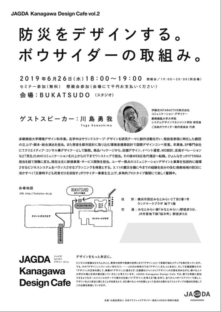 JAGDA Kanagawa Design Cafe vol.2 防災をデザインする。ボウサイダーの取組み(2019/06/11 (Tue))