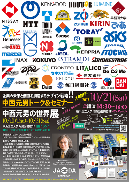 2017年のJAGDA神奈川トーク&セミナーは、VI・ブランディングの巨匠:中西元男氏(PAOS代表)にて開催します。
