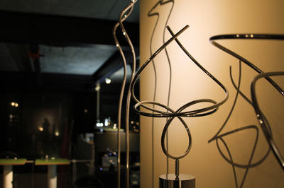 伊藤隆道 氏は、東京芸術大学卒業後、資生堂のショーウィンドウデザインを皮切りに大阪万博、沖縄海洋博、つくば科学博など数多くのプロジェクトに参加、毎日産業デザイン賞、ADC金賞などの受賞を重ねる一方、彫刻の分野では、鏡面のステンレスパイプを曲げ、モーター駆動により時間系を取り込んだ優美な動く造形作品の数々を制作し、箱根彫刻の森美術館をはじめ、先日のJAGDA富山大会の会場でもあった富山県立近代美術館など、様々な美術館、公共空間に作品が収蔵常設されています。