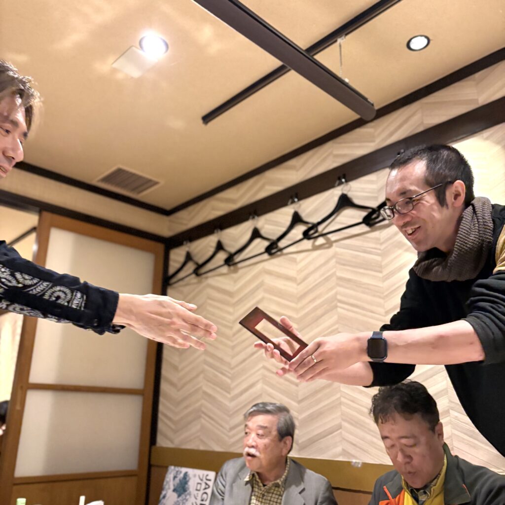 会場を居酒屋へと移し、お楽しみの交流会スタートです。小田原の美味しい魚料理やおでんを堪能しつつ、あげかまコンテストと、写真コンテストの結果発表を行いました。グラフィックデザイナーらしい趣向を凝らした素敵な作品が出揃いましたが、結果は以下の通りとなりました。