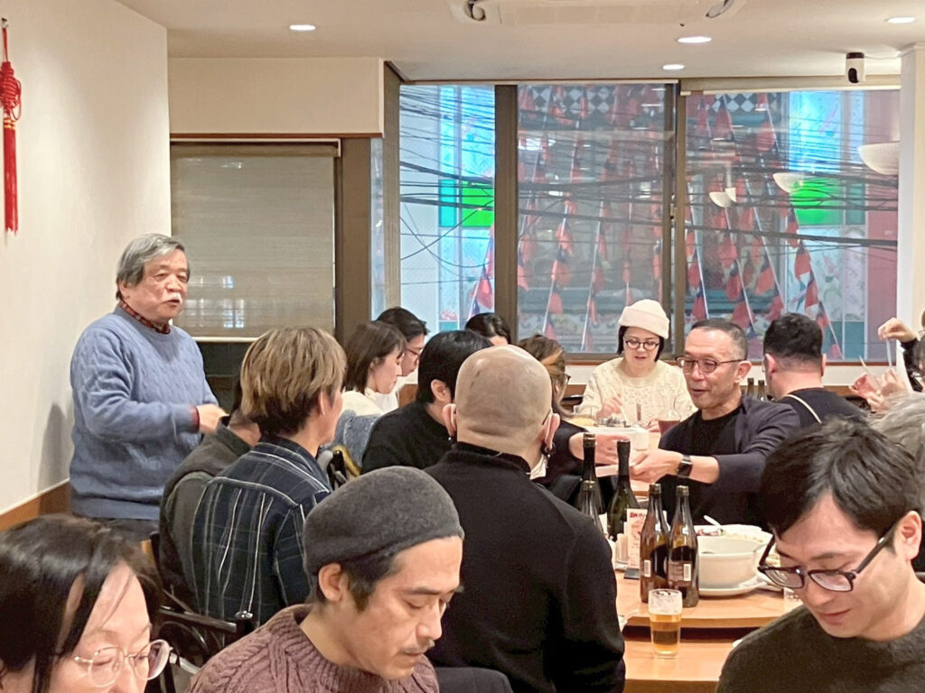 その後は恒例のお店前の公園で記念撮影。鳳林の店主にも撮影にご協力いただきました。ありがとうございました。しばし立ち話を楽しんだ後、帰路につく方々を見送り、二次会会場へ移動しました。